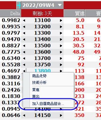 我在選擇權報價中,對每個履約價的選擇權按右鍵,好像沒有把選擇權加入自選股的選項,請問要怎樣做才可以?