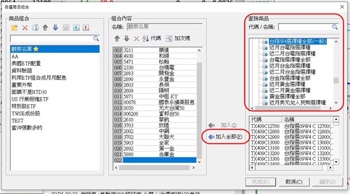 或是由修改自選商品組合選單,可以整批加入。