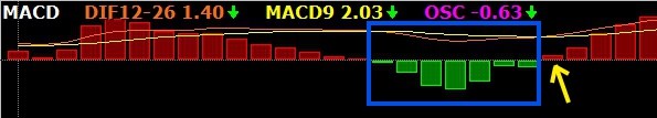 請問,我想找出當MACD綠色柱狀體出現時,而DIF值仍在0軸以上,之後的第一根紅色柱狀體,就是黃色箭頭所指的那一根,請問XS要怎麼寫呢?因為綠色柱狀體會出現幾根,每次都不一樣