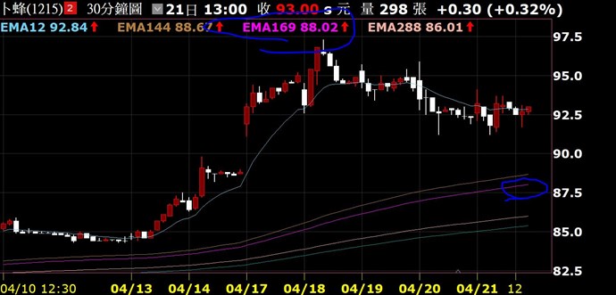 value7 = xfMin_EMA("30", Close,169); //計算30分鐘線169期收盤價的XQ EMA