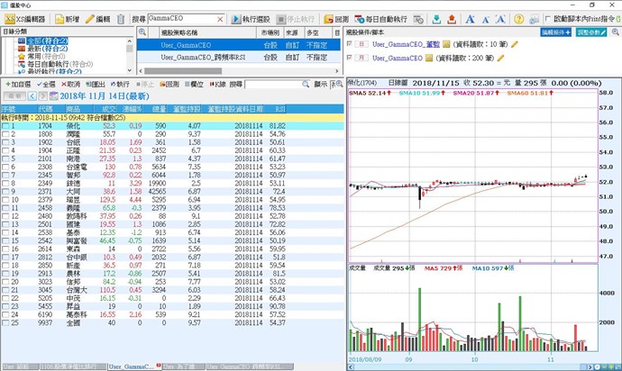 如何同時選出月RSI大於多少且董監持股佔股本比例少於多少的選股清單在同一個頁面瀏覽挑選