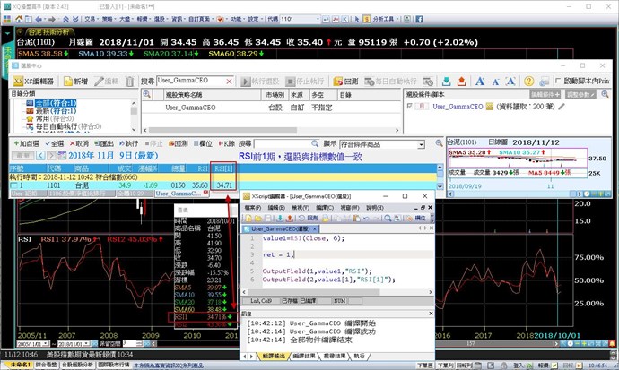 試過N回無論選出的個股為何 OutputField(1,value1,"RSI") 輸出的值都無法與系統內建的月線 RSI 6 吻合???