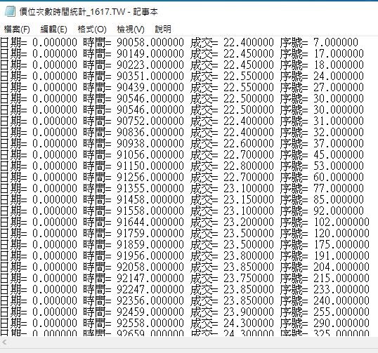 如何統計當日個股價格,各出現的次數和停留的時間及合計次數與時間?