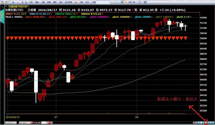 您可以使用技術分析頁面中,右下角的【+】小圖示,