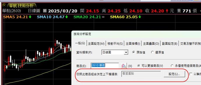您好,若在技術分析使用頁面上的上下鍵,只能在一個商品組合內,不能跨商品組合;