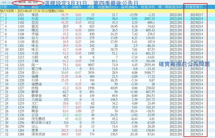 刻意讓選股跑在3月31日,也就是第四季最後一天公告日