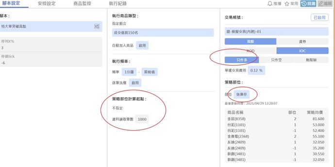 腳本設定 策略部位是: 依庫存 (我以為會自動去算庫存