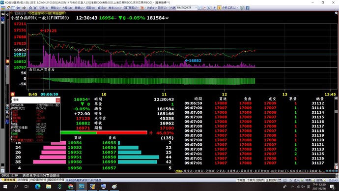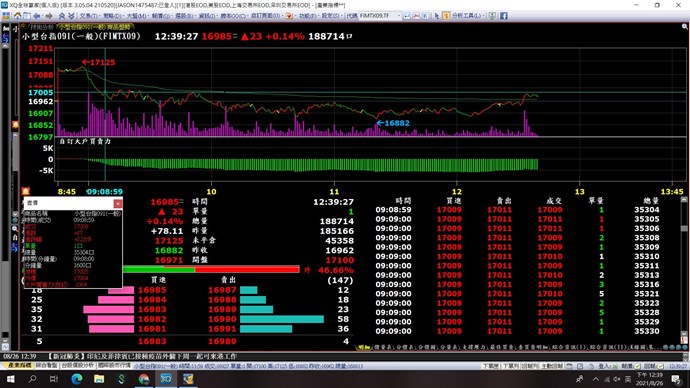 小台09:07:59的成交價則是17013,但出現的狀況是分時走勢圖卻是在往下走的狀況