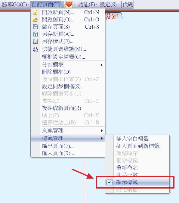 您好,請進入「自訂頁面/標籤管理/」 並勾選「顯示標籤」再試看看。