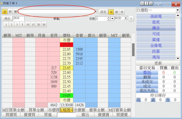 但是在證券下單視窗帳號區是空白的 所以無法下單