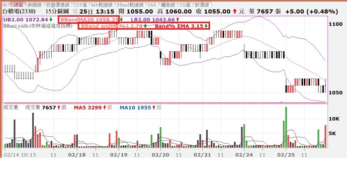 bbandwidth = BollingerBandWidth(GetField("Close","15"),Length,UpperBand,LowerBand);