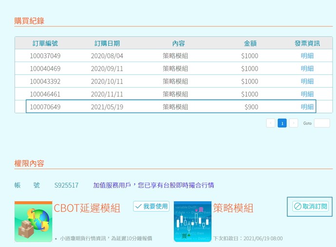 您好,小編查詢您的策略模組於6/19續訂成功,請問目前使用是否正常呢? 謝謝!