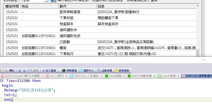 IF Time=131500 then begin Retmsg="總尾清1315出場"; ret=1; end;