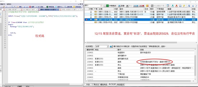 12月有2次啟動平倉雷達出現:[錯誤代碼5029,引用歷史資料不存在]的問題