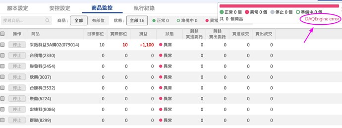 我的自動交易2024/3/5開盤前也突然出現DAQEngine error,且是所有策略,所有商品都Error異常