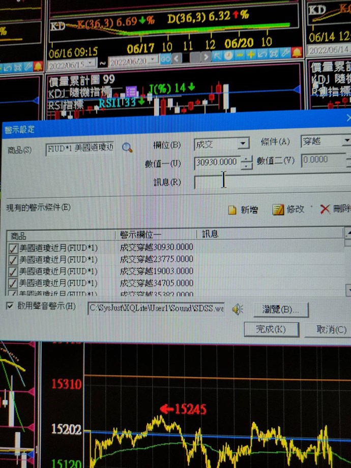 如題,二處所設定點位之線顏色單一,可否類似畫趨勢線一樣,可選擇不同顏色,讓使用者可自定所需不同意涵,例如平盤線,開盤線,大量線...如果很麻煩,可否在後面增加備註,且滑鼠點觸該線時,連同點位及備註訊息一同顯示!謝謝,現在警示設定有加註訊息功能,但點觸時無法顯示?