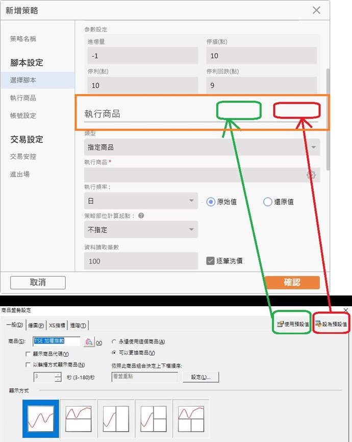 建議:自動交易執行商品新增『使用預設』和『設為預設』按鈕.