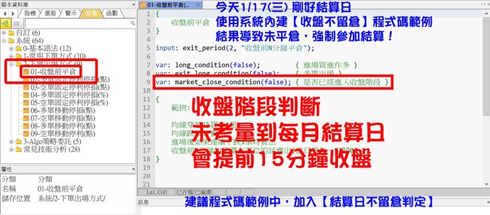 【強烈建議】自動交易內建的【收盤前平倉】的程式碼範例腳本【加入結算日判斷!】