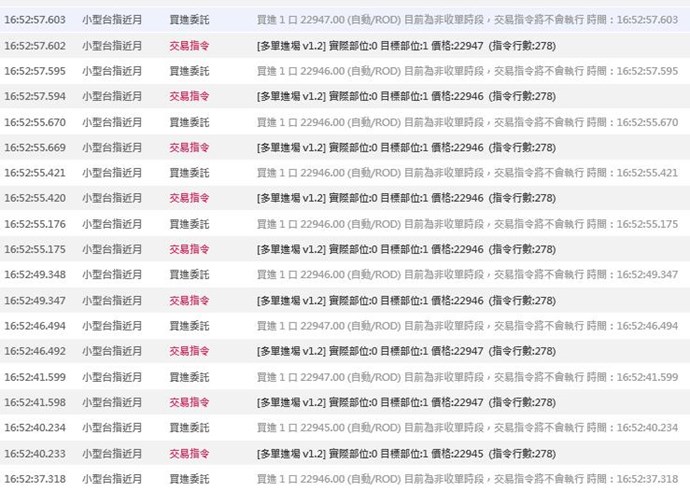 小幫手好, 目前11/13下午不知為何自動交易出現如此錯誤無法下單, 請儘快協助處理