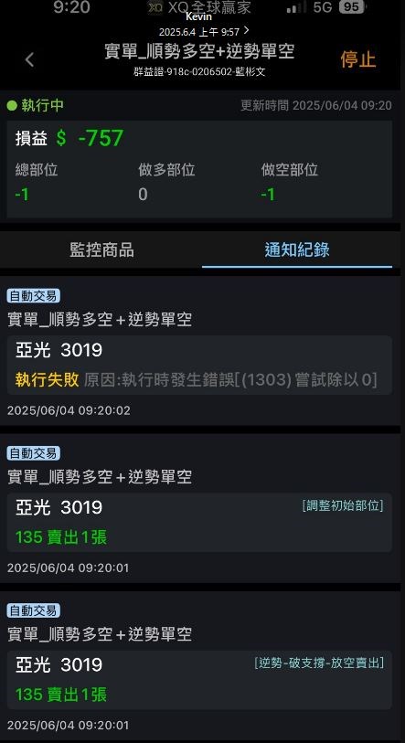於2025/6/4日 , 實單帳戶的3019 亞光 , 發生[1303嘗試除以0錯誤]