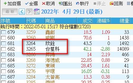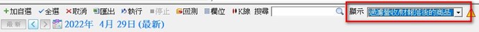 若注意看 代碼 與 商品 欄位, 會發現營收或財報落後的商品, 顏色會不一樣, 而最新營收或財報的商品, 會是正常的顏色