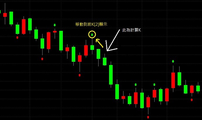 (當達成upFractal 則開始將箭頭畫在 arw_new(日期,時間,位置,下(上)箭頭);)