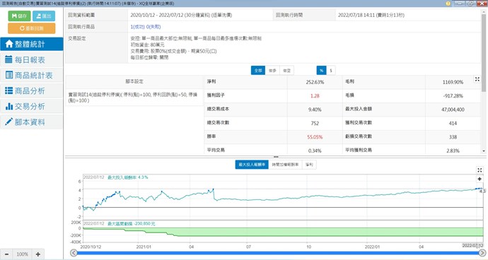 想請教寫了以下交易腳本請問為何大小台測試出來的數據不一樣呢?