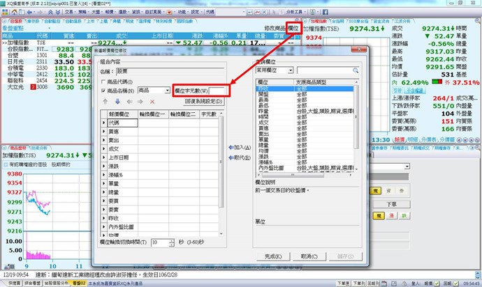 請再進入「自選報價欄位修改」畫面,並取消設定欄位字完數即可。