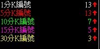 但在5分K線圖上使用時,卻無法正確顯示正確的編號(如下圖)