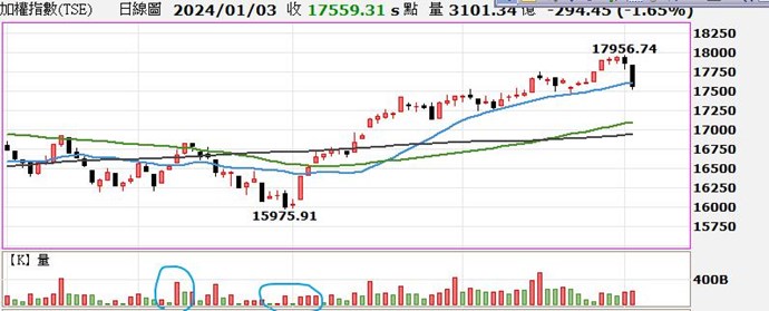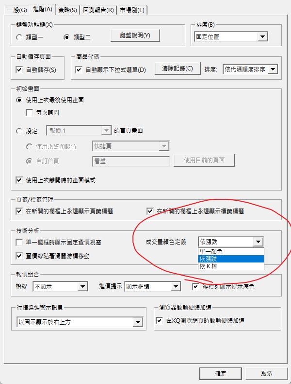 您好,上圖圈選處為現有的功能,是指成交量顏色依漲跌顯示。