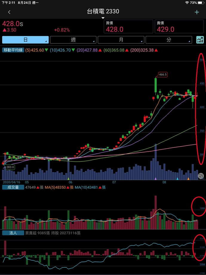 例如下方紅色圈起來的地方,成交量、價格等等...是否可以放大呢? 看得眼睛好痛...