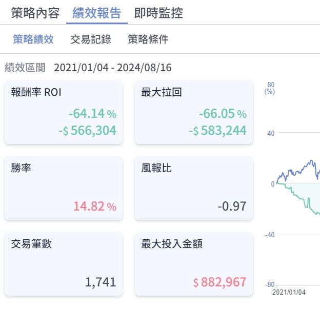 另外報酬率的部分,目前兩個平台我們使用2種不一樣的算法提供給用戶,贏家選股使用時間加權報酬率;量化積木使用最大投入報酬率。