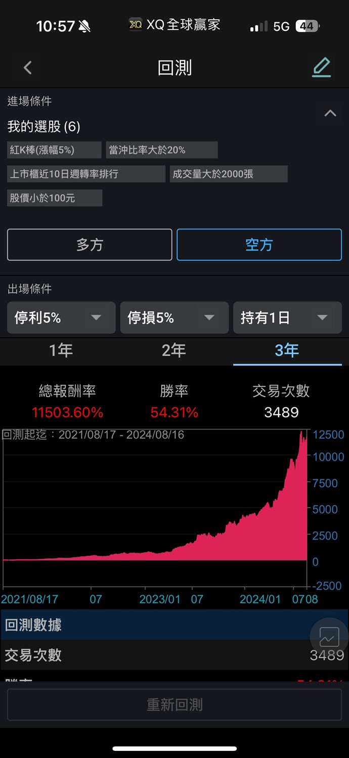 當沖比率條件:贏家選股只計算1天;量化積木最少只有3天可選