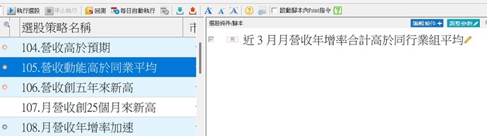 內建105策略有個月營收年增率合計高於同業組平均的條件