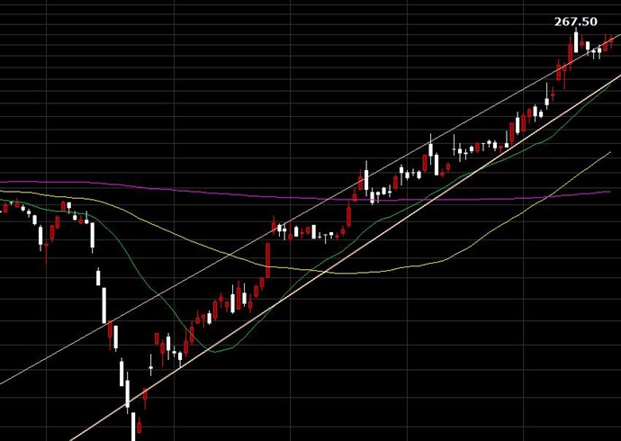 技術分析在對數座標時,複製趨勢線並不會顯示平行