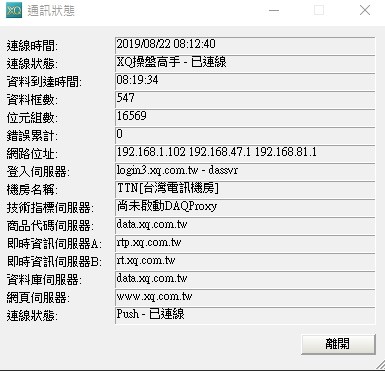 進入電腦XQ操盤高手後,一直無法顯示歷史資料, 試過清除CACHE,或是重新安裝,或是恢復預設都無法解決, 後來在上方功能--系統狀態裡面發現 通訊狀態中的"技術指標伺服器"顯示尚未啟動"尚未啟動DAQProxy" 請問怎麼排除這個狀況? 已寄出LOG.RAR以及無法顯示歷史資料截圖麻煩指導排除狀況,謝謝