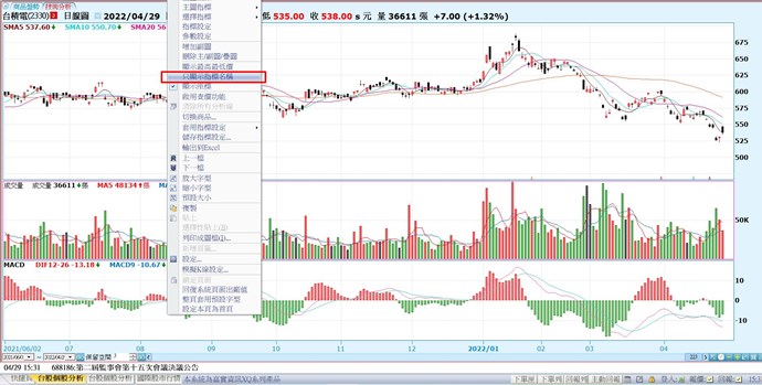Hi小幫手您好:有一個使用上的問題困擾我很久,技術分析圖上面除了會顯示均價,也會顯示自訂指標的相關內容。但是能否讓這個區塊由使用者決定是否顯示。或是乳股選擇固定查價視窗,就不要顯示,如果沒有固定查價視窗,就顯示請參閱附件檔,謝謝