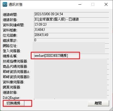2. 可以至功能選單「功能→系統狀態→通訊狀態」查看目前系統的連線狀態,以及切換機房(seednet及TTN)試試。