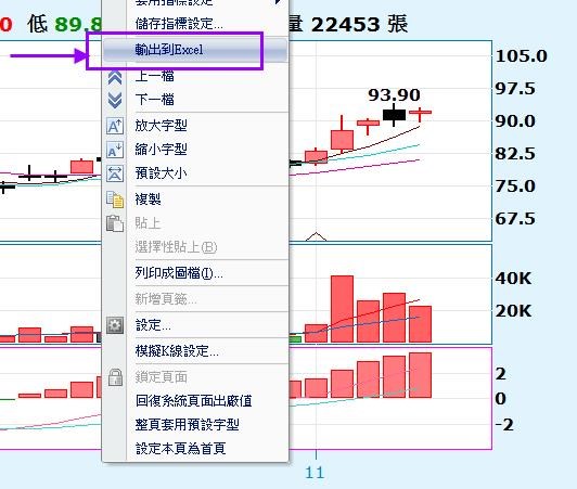 請試試在技術分析畫面,使用滑鼠右鍵叫出功能選單,點選"輸出到Excel",謝謝。