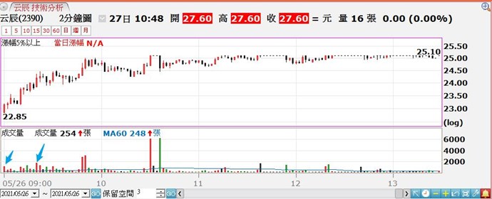 如下圖第一根是1038,到了9:14那一根成交量是1218然後就跳出警示.