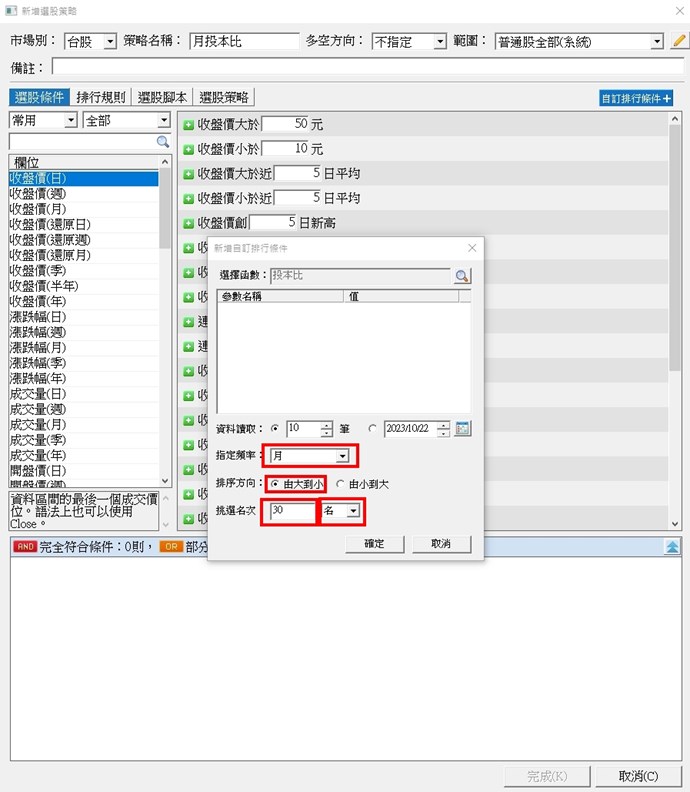 這樣就可以選出這個月較上個月增加的投本比排行,