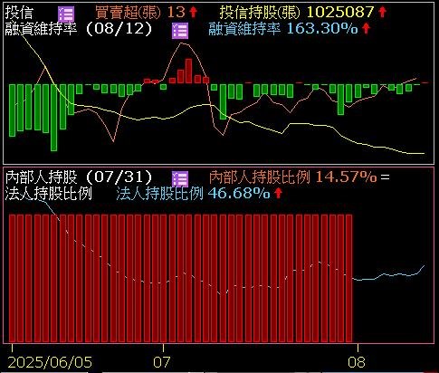 2.因設定「法人持股比例」為疊圖,疊圖的Y座標軸會與副圖指標不同 (但疊圖座標軸畫面不會顯示出來)。