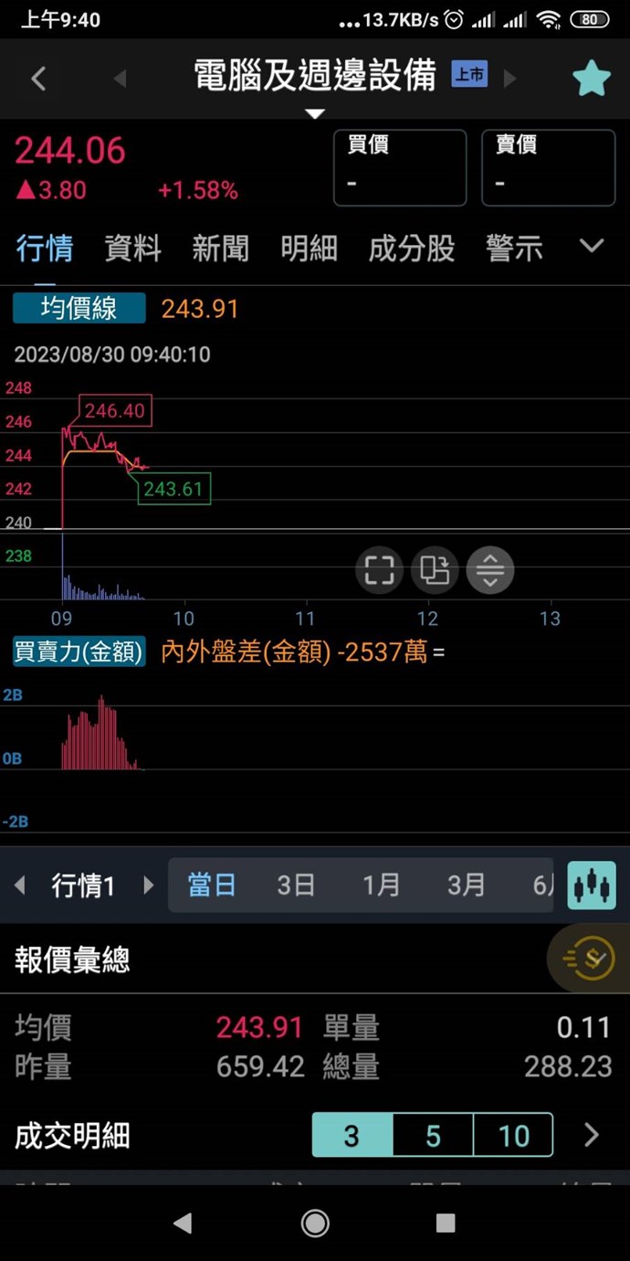 1分K 第一根K棒 高:246.24 低:244.4 均價:243.95 (均價應該不會比低點還低吧)