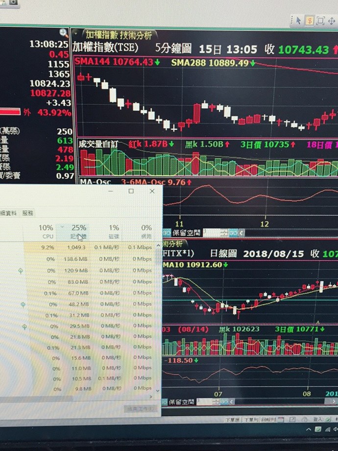 在看台指5分線時,柱狀體會一半綠一半紅,怎麼會發生這種情形呢 ? 按F5就會好了,可是有時候畫新的K棒又會出現錯誤。