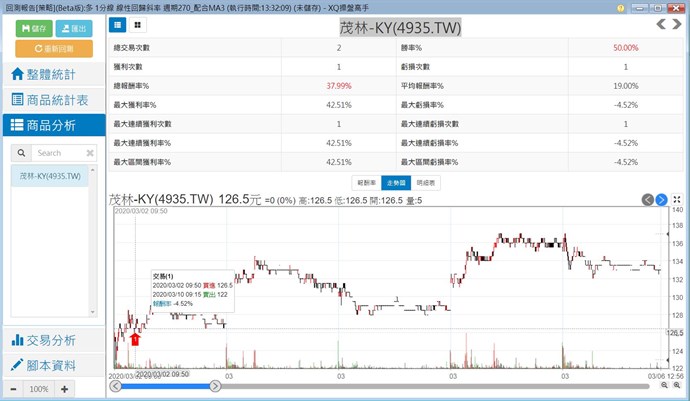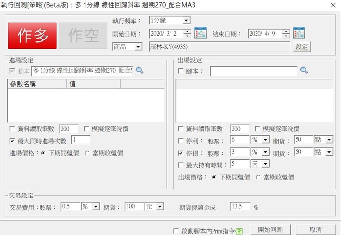針對 茂林-KY(4935.TW) 做回測,回測設定如下: