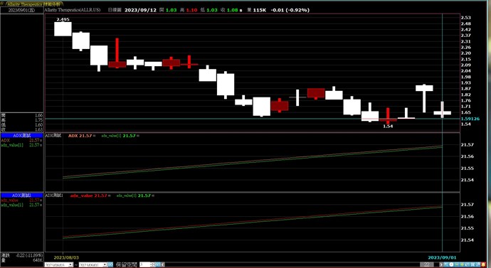 我想詢問,我測試台美股都有一樣的問題,如圖,我寫了一個DMA,ADX指標