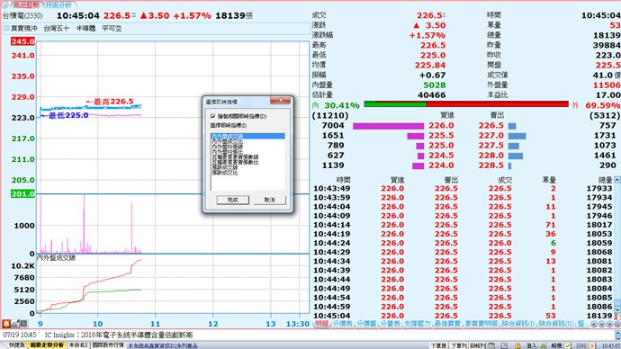 在個股商品走勢頁面,可以設定內外盤相關的即時指標。
