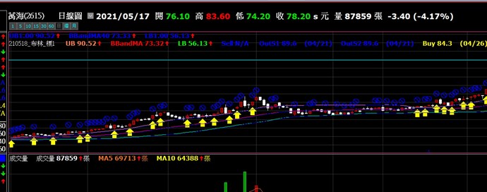 我把買賣訊號劃成箭頭,也有用變數_stockB來決定當下庫存是0還是1,但就是會一直重覆出現買或賣的訊號,一般應是有庫存狀下是不再二次出現買或賣的進場訊號。
