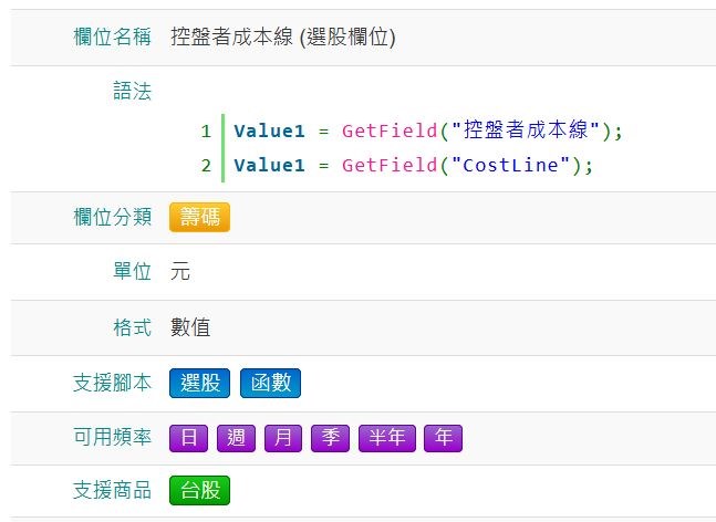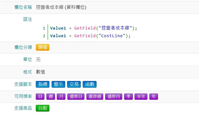 控盤者成本線的資料欄位和選股欄位,函數文字看不出差別在哪,為何支援的腳本和頻率不一樣