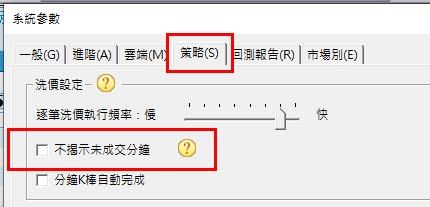 搭版問一下小編,可否說明一下 不揭示未成交分鐘 實際作用為何? 那個問號點進去的文章都沒看到解釋,還有這個對策略的影響有哪些? 謝謝